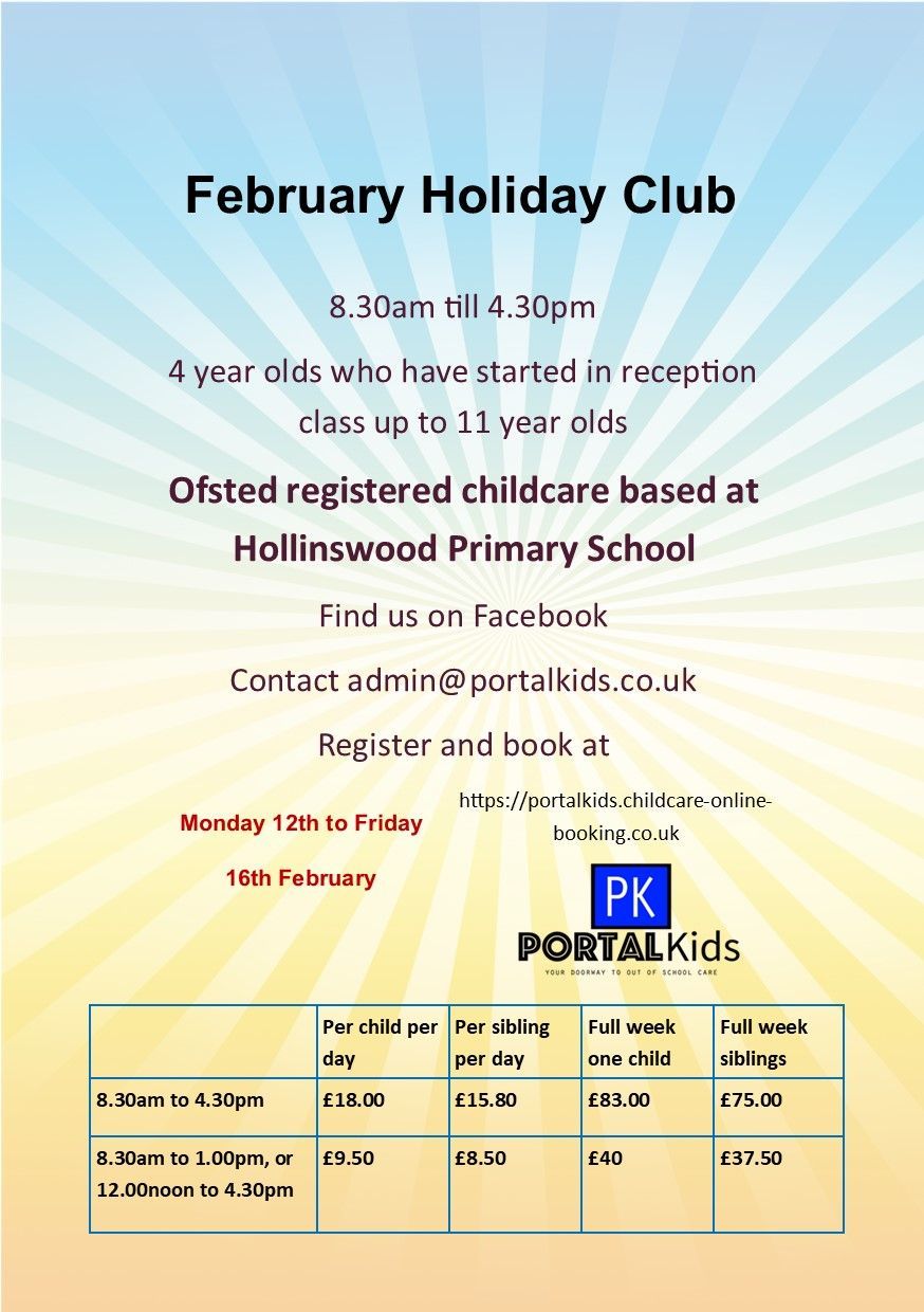 After School club is open until 5.30pm. Holiday club hours are 8.30am till 4.30pm.